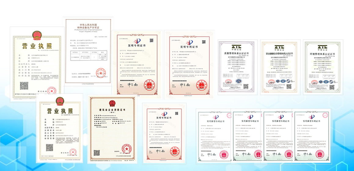 | ⊙ 营业执照 | ⊙ 压力容器制造特种设备生产许可证 | ⊙ 专利证书(ZL 2023 1 1114848.2) |
